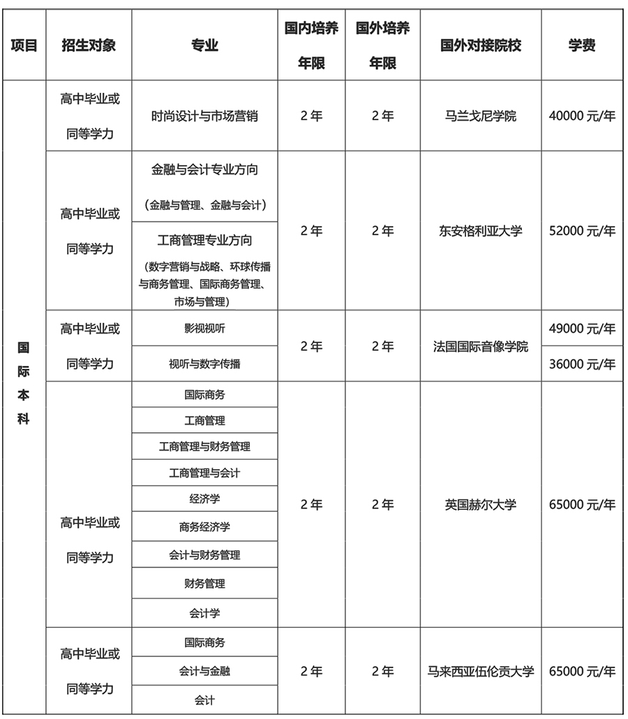 培養模式:國際本科【國內2年,國外2年】