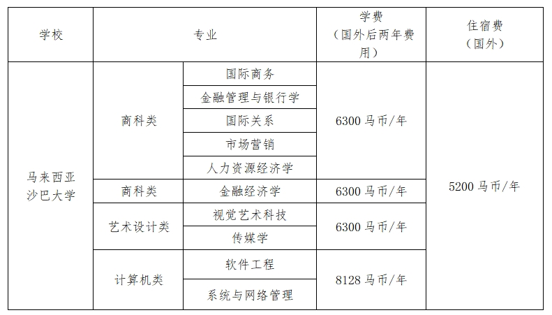 備注:馬來西亞沙巴大學本科學製年限根據專業的不同,分為3.5年製和4年製。