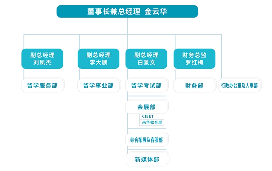 嘉華世達設有留學服務部、留學事業部、留學考試部、綜合拓展部、會展部、媒體部、財務部及行政辦公室及人事部。二十餘年來嘉華世達向海外輸送留學生近15萬人,本著“為中國學生提供海外優質教育服務”的宗旨,積極、穩妥地開拓新項目,努力打造一條中國學生赴海外深造的安全通道。締造未來,值得信賴!