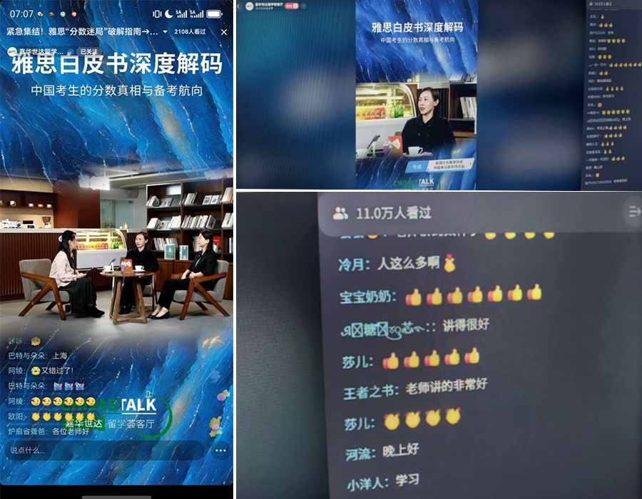 直播期間,抖音、騰訊視頻號雙平台同步熱播,互動氛圍持續高漲。評論區裏,“分數邏輯終於懂了”“備考方向一下子清晰了”“講得透徹,實用性拉滿”等正麵反饋不斷刷屏,20萬次點讚與3093條互動評論,見證了觀眾的參與熱情與內容認可度。不少觀眾表示,這場直播既解答了備考疑惑,也為留學規劃提供了關鍵參考,堪稱“及時雨”般的實用分享。